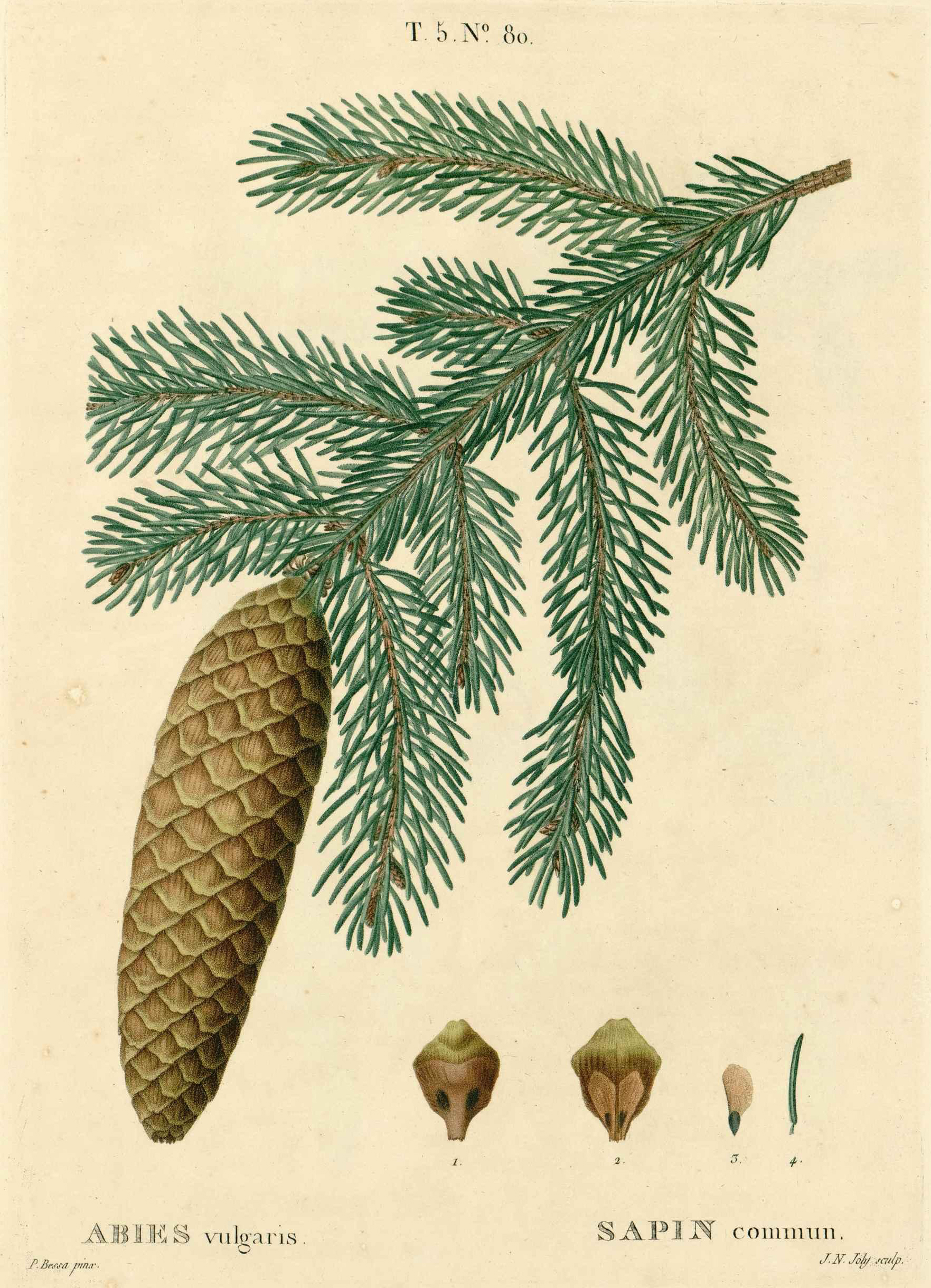 Tű: 4 élű, kissé szúrós, 1–2,5 cm hosszú, egyenként áll a rövidhajtásokon; erősen illatos, ha megdörzsöljük.