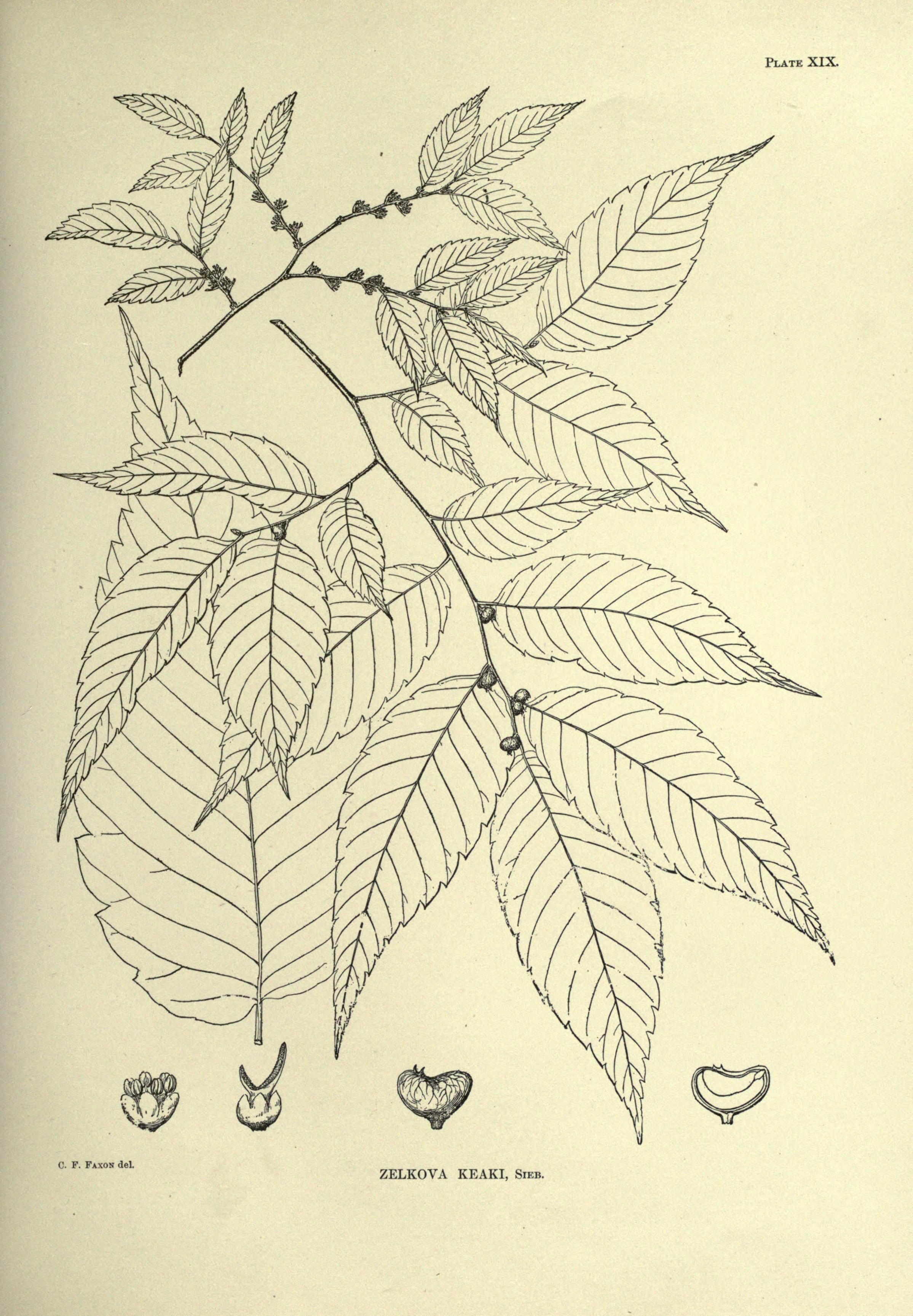 Szinonimiai háttér: a fajt eredetileg Thunberg írta le Ulmus serrata néven; Makino helyezte át a Zelkova nemzetségbe → Zelkova serrata (Thunb.) Makino.